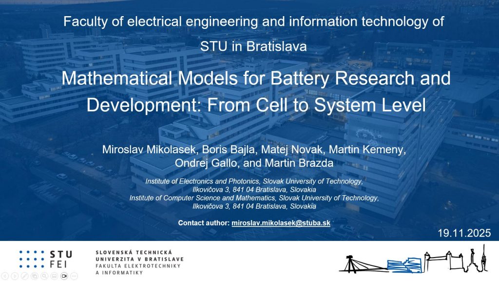 As an invited speaker, Miroslav Mikolášek presented the talk “Mathematical Models for Battery Research and Development: From Cell to System Level”. His presentation highlighted how advanced modelling and simulation approaches enhance understanding of battery behaviour and support the development of robust, reliable energy-storage technologies.